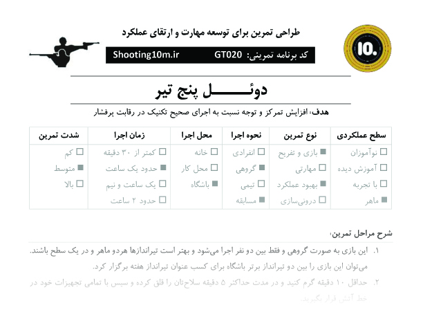 برنامه بازی تمرینی کد GT020 با عنوان دوئل پنج تیر